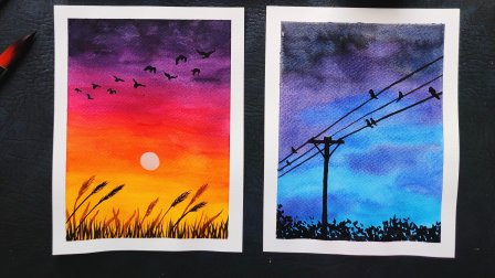Easy Watercolor Painting Ideas For Beginners Day And Night Painting Shades Of Nature Painting Youtube